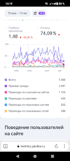 Трафик: Снижение на 32% (5 368 визитов), но целевые переходы из соцсетей ▲+41% (336).